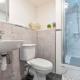 El interior del apartamento está pensado para brindar todo lo necesario: dispone de cocina americana completamente equipada con horno, fogones, nevera, microondas y pequeños electrodomésticos como hervidor eléctrico y cafetera. La unidad también incluye lavadora y plancha para ropa, además cuenta con sofá confortable junto al vestidor y armario amplios. El baño privado destaca por su bañera hidromasaje combinada con ducha a ras de suelo y artículos de aseo gratuitos que complementan la estancia.