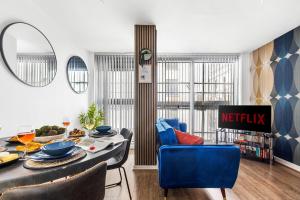 Bullring Lux Suite- Netflix-Free Parking-Sleeps 6 is a spacious apartment located in the heart of Birmingham, United Kingdom. It offers one large living room alongside two bedrooms and two bathrooms, accommodating up to six guests comfortably. Just 200 metres from Birmingham New Street station and half a kilometre from Hippodrome Theatre, this property provides easy access to key city attractions.