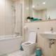 En cuanto al alojamiento, dispone de dos dormitorios separados con capacidad para tres camas en total, cuenta además con una sala de estar equipada con sofá y zona para relajarse. La cocina americana está completamente equipada con nevera, horno, microondas, fogones, tostadora, hervidor eléctrico y todos los utensilios necesarios para preparar tus comidas. También incluye lavadora y secadora de ropa así como calefacción central. Los dos baños privados ofrecen ducha a ras de suelo o bañera según preferencia junto con artículos gratuitos como champú y acondicionador.