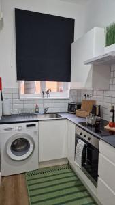 L'appartement comprend une cuisine entièrement équipée avec réfrigérateur, four traditionnel et plaque de cuisson ainsi que des petits appareils comme micro-ondes, grille-pain et bouilloire électrique. Vous y trouverez aussi tous les ustensiles nécessaires pour préparer vos repas. La salle de bains privée offre douche ou baignoire avec sèche-cheveux et savon fourni. Le logement comporte trois lits répartis dans ses deux chambres ainsi qu’un lave-linge pour votre confort. Le coin salon est agrémenté d’une télévision à écran plat avec services de streaming intégrés.