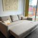 Das Apartment verfügt über ein Schlafzimmer mit zwei Betten sowie ein Wohnzimmer mit Sofa und Schlafsofa. Die gut ausgestattete Küchenzeile beinhaltet einen Kühlschrank und eine Herdplatte zum komfortablen Kochen. Zur weiteren Ausstattung gehören Heizung, Schreibtisch, Schrank sowie eine Waschmaschine. Das Badezimmer bietet sowohl Badewanne als auch Dusche samt Haartrockner und kostenlosen Pflegeprodukten.