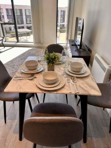 Die Wohnung verfügt über eine voll ausgestattete Küche mit Herdplatte, Backofen, Mikrowelle, Kühlschrank, Spülmaschine sowie Kaffee- und Teezubehör. Ein Esstisch lädt zum gemeinsamen Essen ein. Zwei Badezimmer sind mit Badewannen ausgestattet und bieten zudem Haartrockner sowie kostenlose Pflegeprodukte an. Zur weiteren Ausstattung gehören Handtücher und Bettwäsche, Heizung, Bügeleinrichtungen sowie Waschmaschine und Wäschetrockner. Für Unterhaltung sorgt ein TV im Wohnbereich.