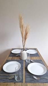 El interior cuenta con una cocina americana totalmente equipada que incluye fogones, nevera, horno y microondas además de lavadora y secadora de ropa para mayor comodidad. Las habitaciones disponen de tres camas distribuidas entre sus dos dormitorios, también ofrecen calefacción, armario amplio, zona de estar con sofá y escritorio. En el baño encontrará gel de ducha junto con toallas frescas y ropa de cama completa.