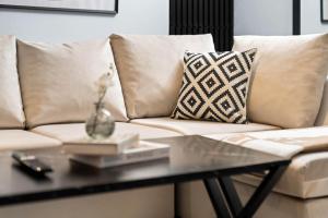 Gli spazi interni comprendono un soggiorno ampio con divano e TV a schermo piatto dotata di servizi streaming come Netflix. La cucina attrezzata con piano cottura, forno tradizionale e microonde consente di preparare pasti in totale autonomia, non mancano frigorifero, bollitore elettrico, tostapane e utensili da cucina completi. Le due camere sono dotate ciascuna di letti confortevoli, i bagni privati presentano doccia con set cortesia che include bagnoschiuma, shampoo e balsamo. Inoltre l’appartamento dispone di lavatrice, ferro ed asse da stiro oltre a biancheria per la casa e asciugamani.